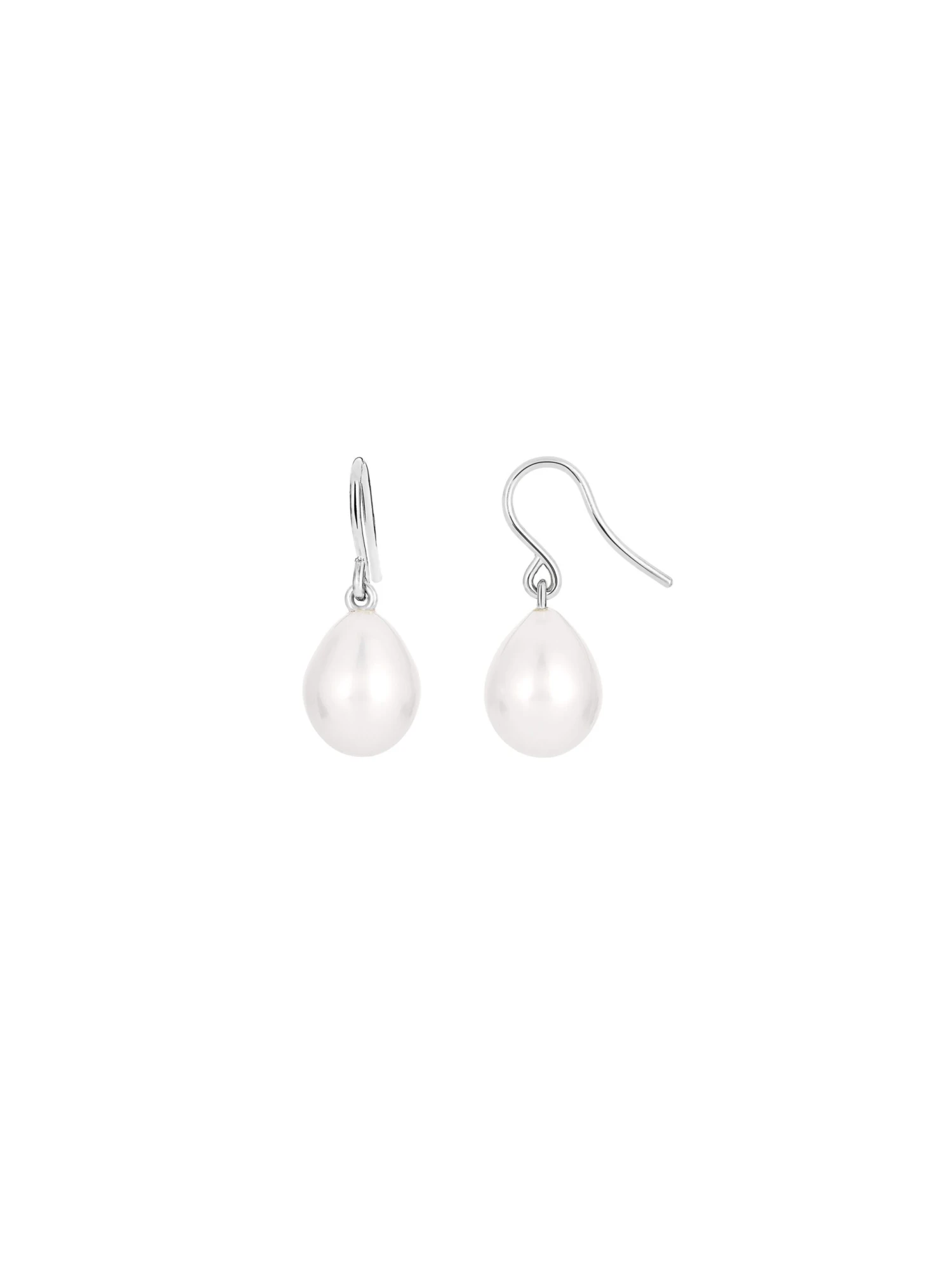 - 2 cultured freshwater pearls in white, pear-shaped. diameter: 9 – 9,5 mm
