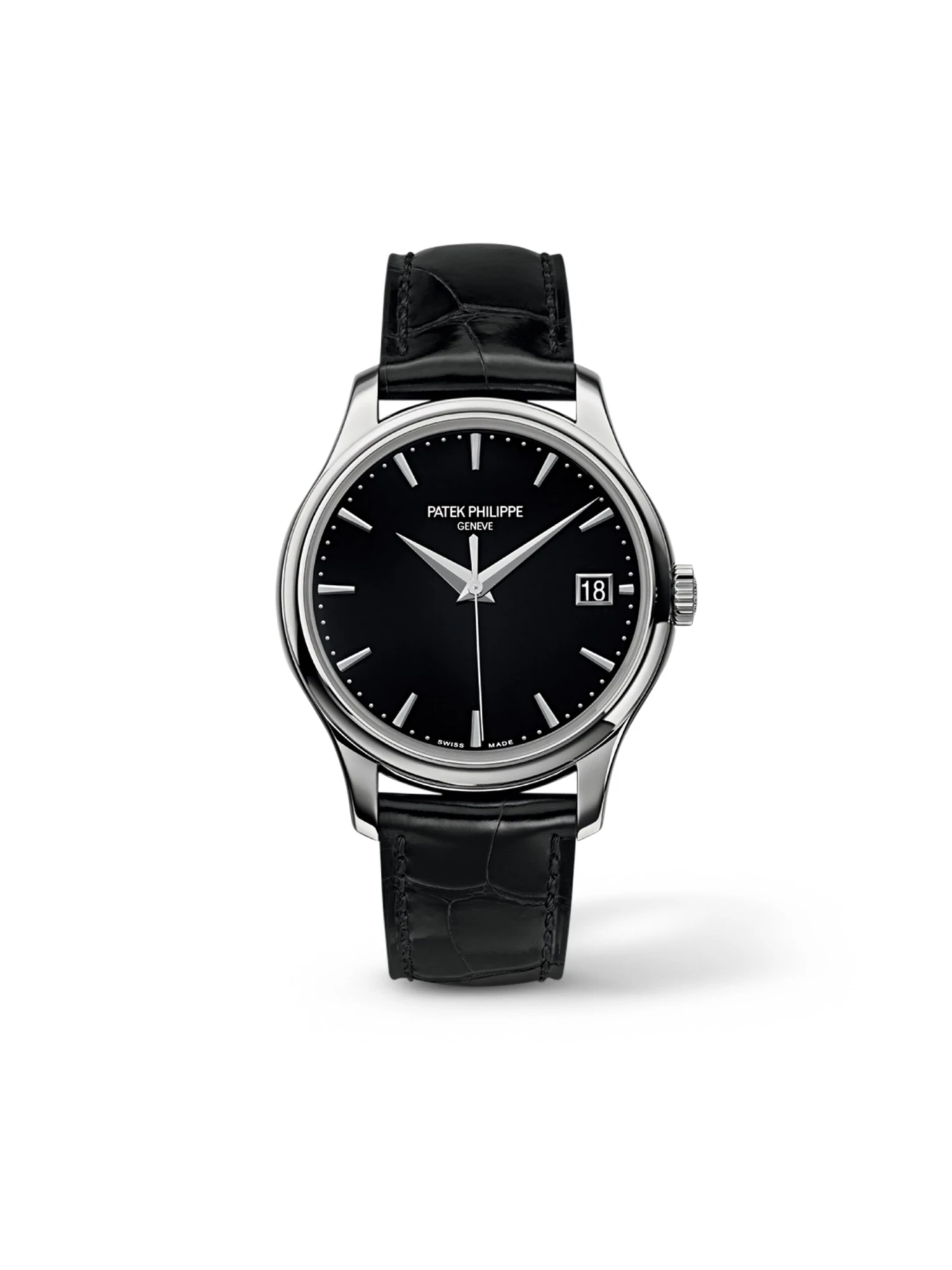 This model, reference 5227G-010, brings together two of this company’s masterpieces: the Calatrava, an icon among simple watches, and the Officer’s watch with a dust cover over the case back. The sapphire crystal case back of the self-winding three-hand watch is covered by a dust cover. Its highlight is an inner hinge invisible from the outside. The 18k white gold case measures 39.0 x 9.24 millimeters and features a black dial. At work behind it is a 324 S C caliber with center seconds hand and date.