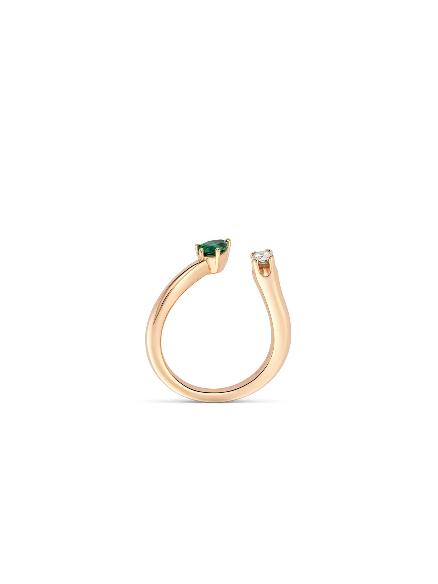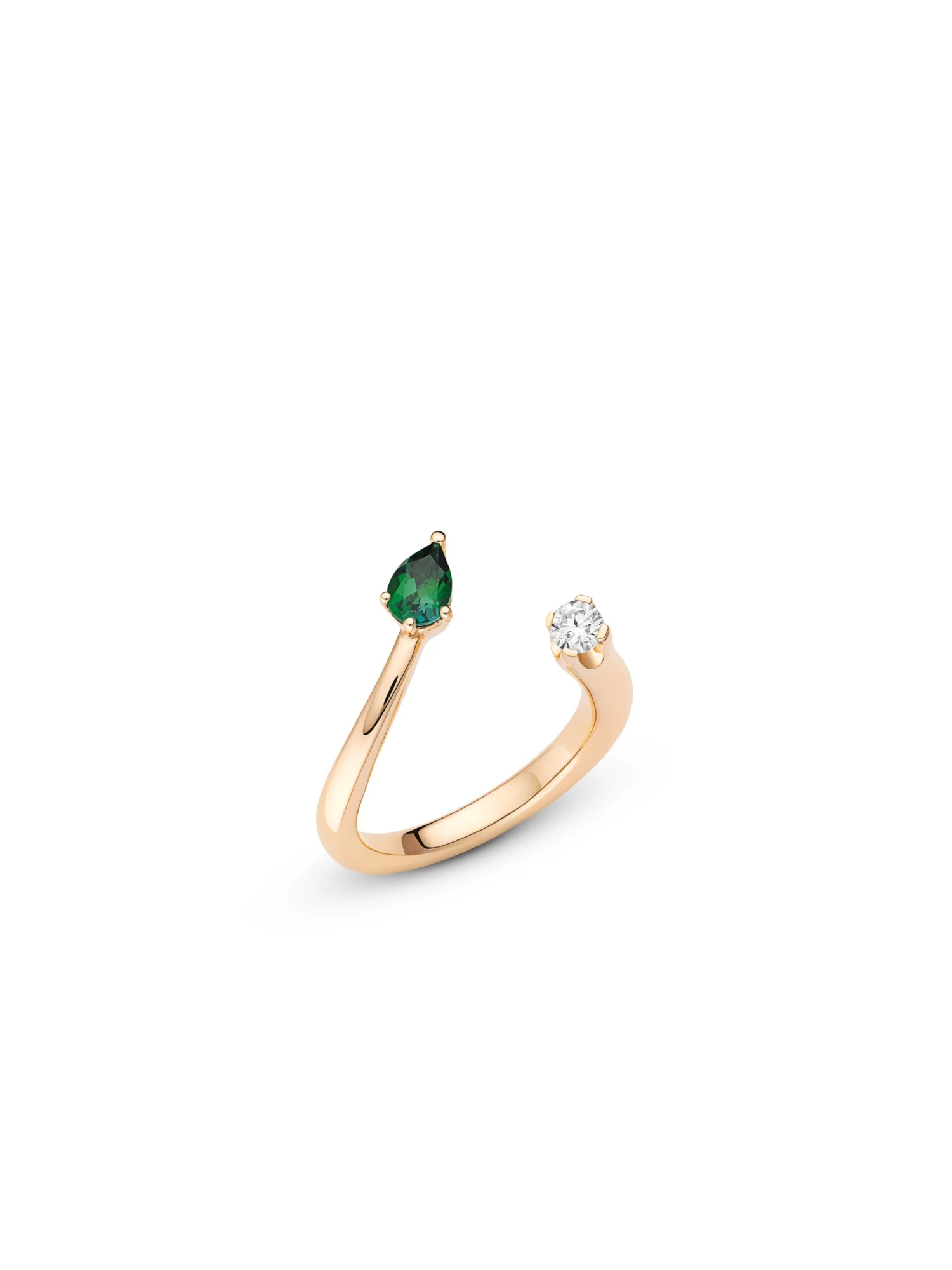 The tender interplay of 18k rose gold and the fascinating dark green color of the pear-shaped tourmaline of 0.35 ct of this open Daily Colors BY KIM ring calls to mind the multi-facetted flair of Morocco: the unique scents and colors of spices, cacti, and seemingly endless sunsets. The colored gemstone forms an exciting contrast to the delicate brilliant-cut diamond of 0.14 ct and provides a touch of color to every look without being too dominating.