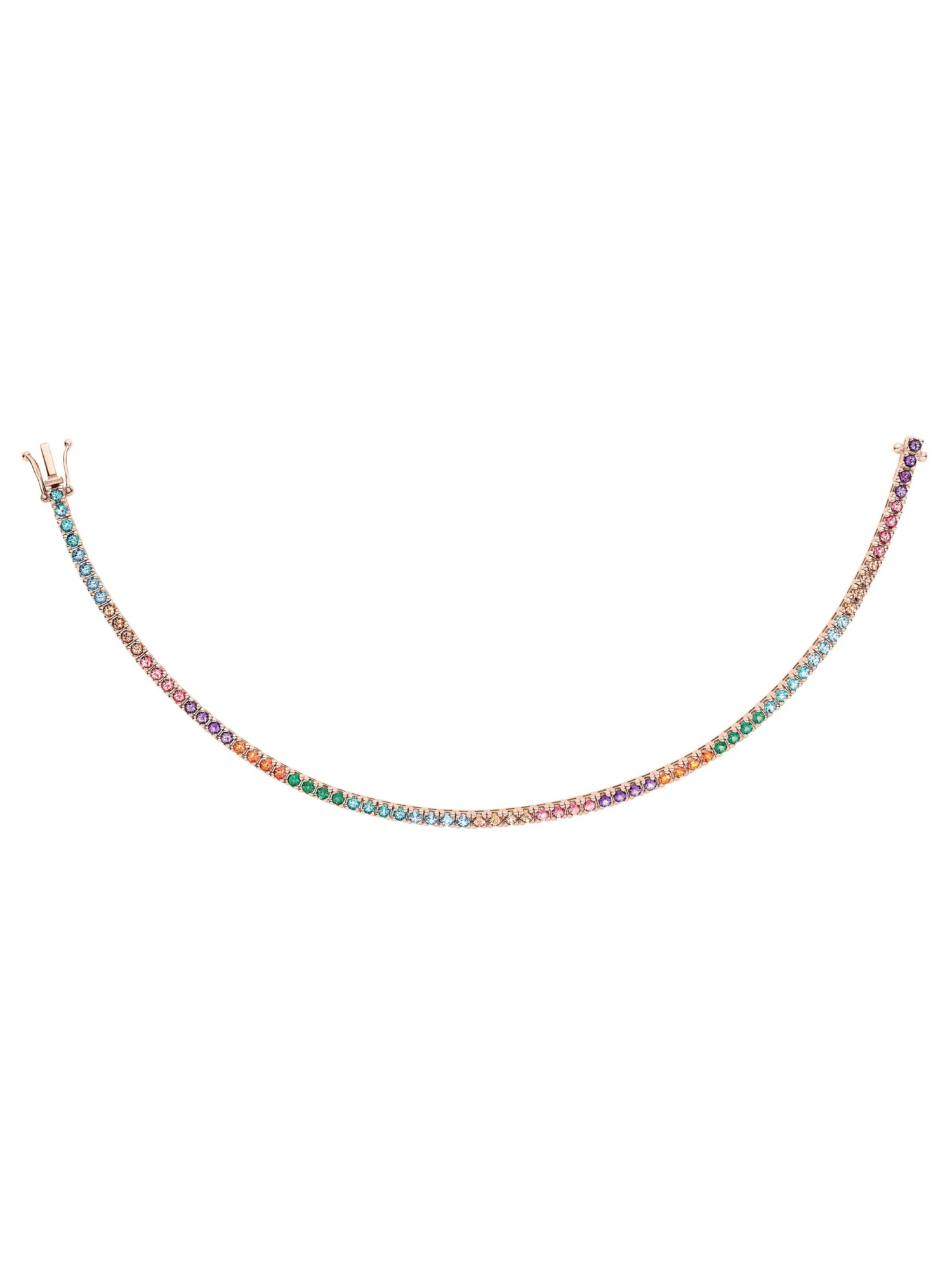 “There is a pot of gold at the end of the rainbow”. With the Electrify bracelet, our treasure hunt will come to an end: presenting itself in all colors of the rainbow, this bracelet inspires us with its lightness and takes us back to our childhood. 76 topazes, set in warm 18k rose gold, let us dream and give sparkle to our summer outfits.