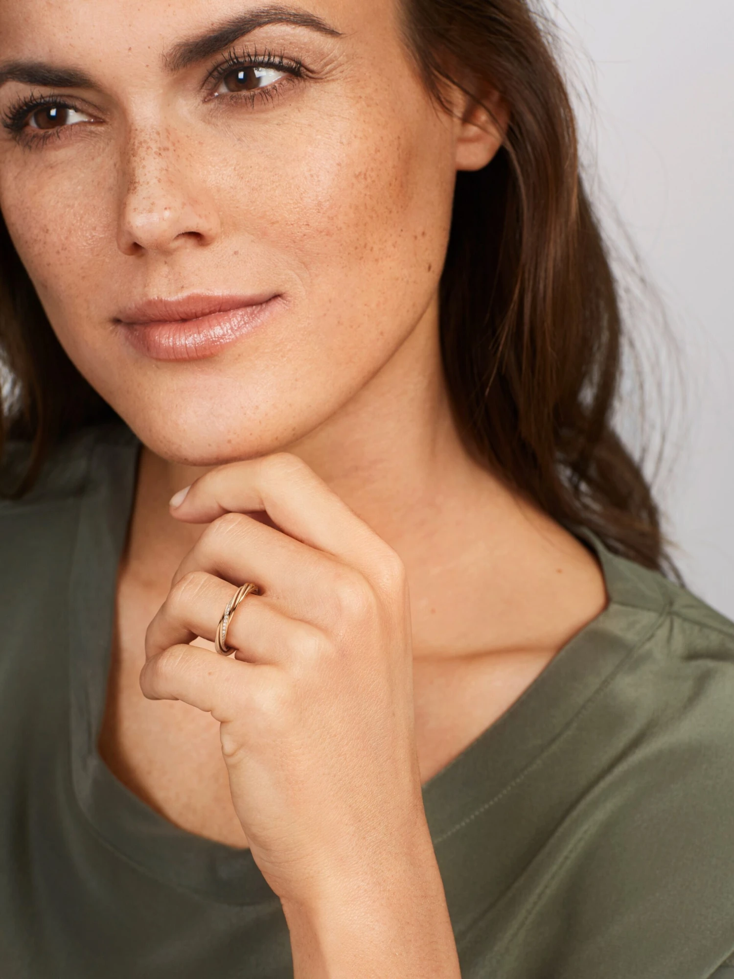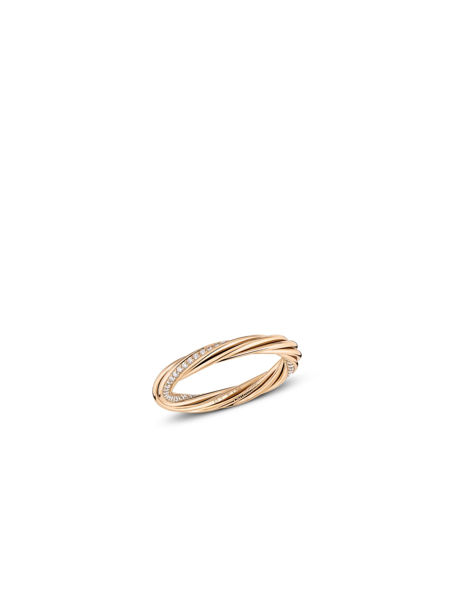 The Helioro XS BY KIM ring in shimmering 18k rose gold celebrates classic elegance and contemporary chic. In the XS version, five gold strands are intertwined, one of which is set with 59 brilliant-cut diamonds, to form a perfectly shaped and unmistakable masterpiece. With a width of 3 mm the ring, handmade in our Atelier, can be perfectly combined with other rings.