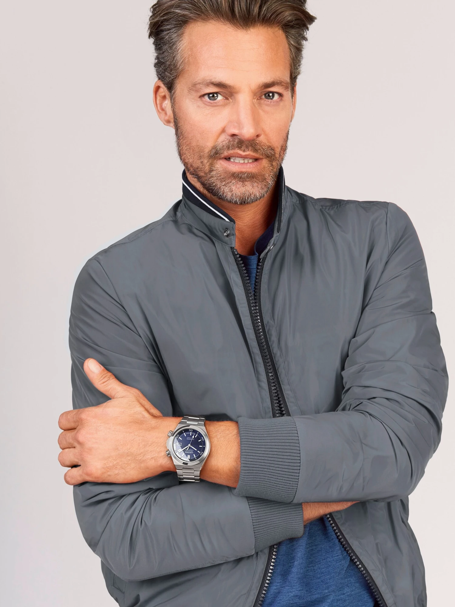 Inspired by the dauntless steel construction workers of the New York skyscrapers from the 1920s, the Wempe Glashütte I/SA Iron Walker collection distinguishes itself by the powerful combination of technical expertise and a striking design. The Iron Walker Automatic Diver’s Watch with center seconds hand, date display, and internal rotating bezel fulfills all stringent criteria of the ISO and DIN standards for diver’s watches. The 42-millimeter stainless-steel case with a height of 11.70 millimeters is water-resistant to 30 bar and features a blue dial. Super-Luminova® coated hands and hour markers ensure perfect readability also in the dark.