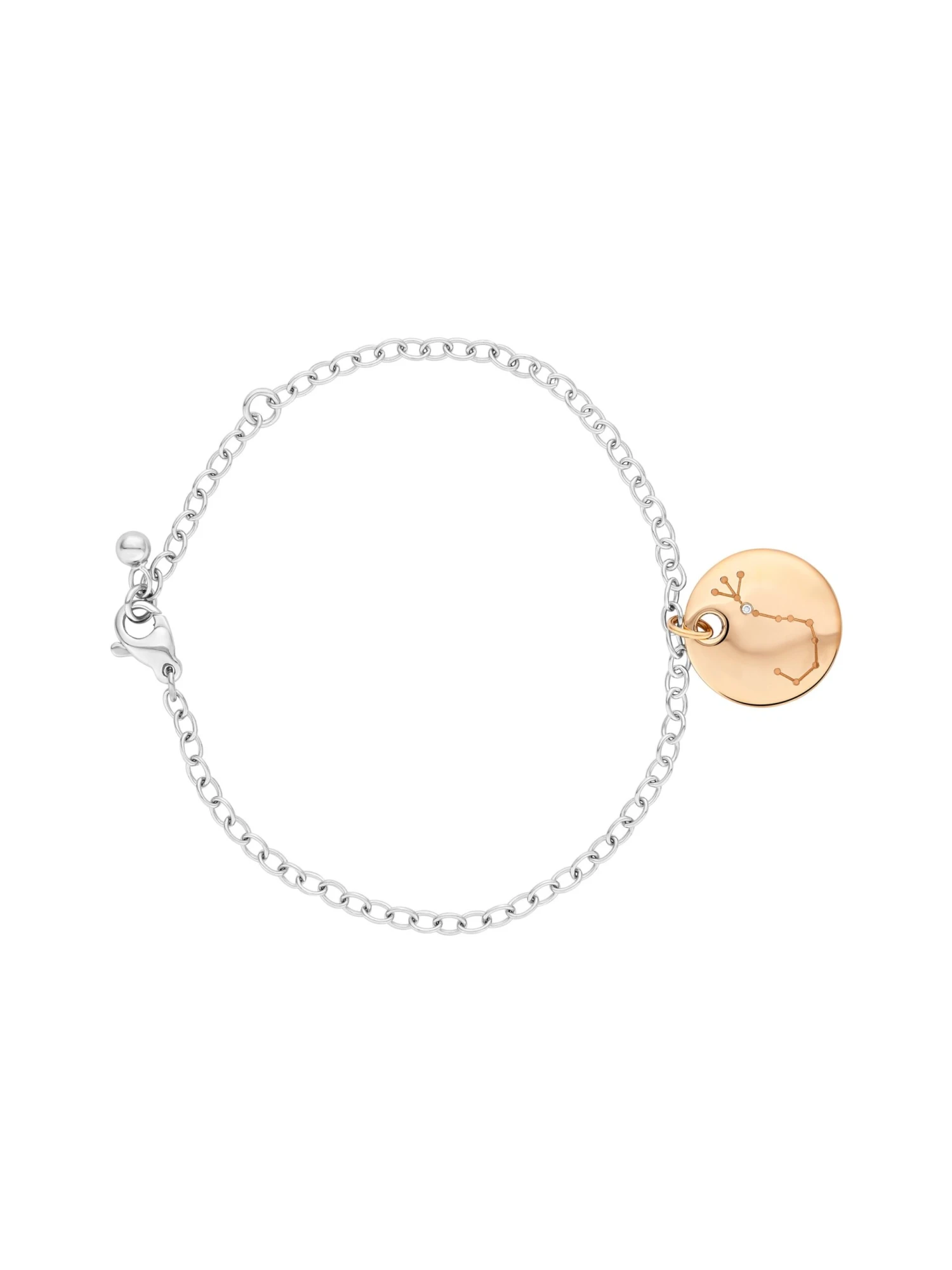 As breathtaking as the night sky: The highlight of this Lucky Constellation BY KIM bracelet is the engraving of a special configuration – that of a Zodiac sign. Crafted onto a fine, round 18k rose gold disc and adorned with a 0.01 ct brilliant-cut diamond, the motif of this pendant can be individually chosen. A lucky charm and ideal gift for a special person.