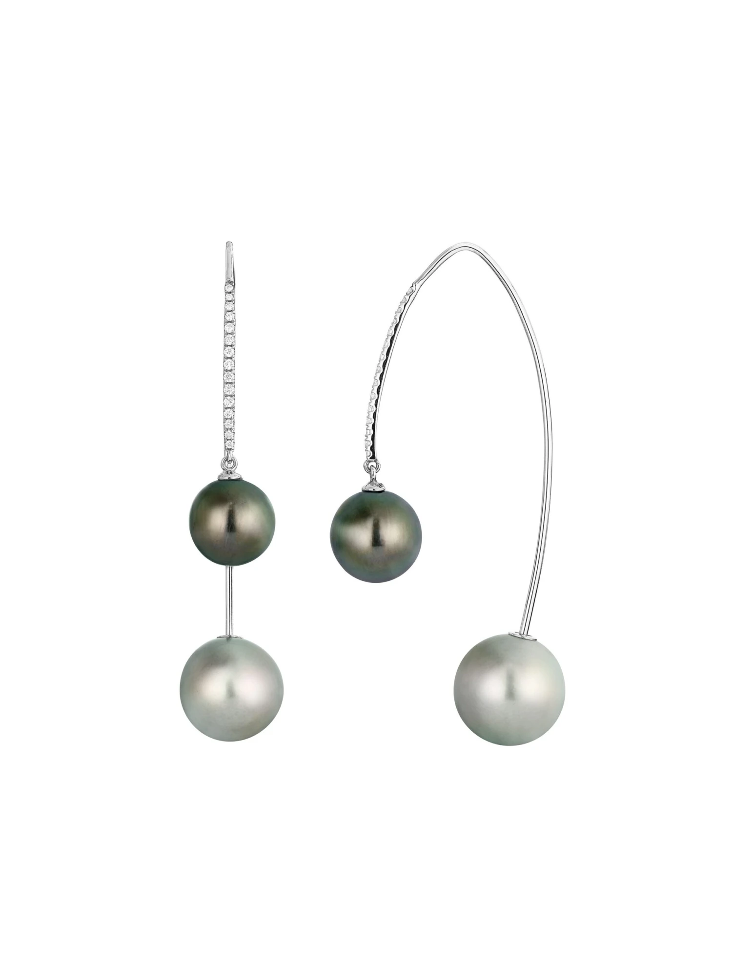 Mystically shimmering cultured Tahitian pearls seem to cascade down the artful hook in 18k white gold set with fine brilliant-cut diamonds. The Tidedrops by Wempe Casuals earrings stand out due to their fascinating graphic design that reminds us of a breathtaking waterfall. These earrings are always an exciting eye-catcher, whether they are worn on their own as a highlight piece or in combination with further jewelry items from the Tidedrops by Wempe Casuals line.