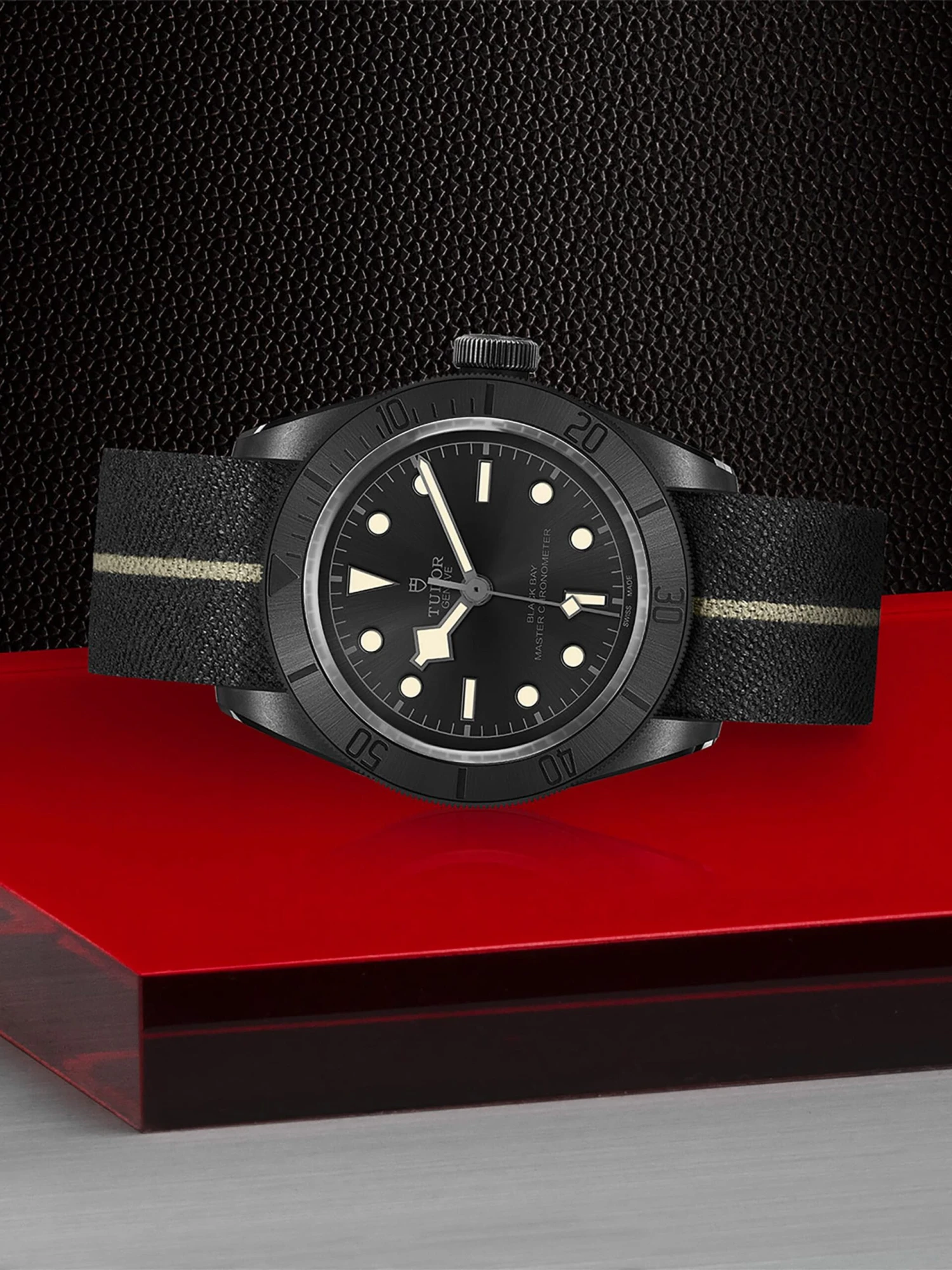 The Black Bay celebrates 60 years of diving watches with extraordinary heritage. The iconic model inherits the general lines, as well as the domed dial and crystal from the first Tudor diving watches. It borrows the characteristic angular hands, known as snowflake, from the watches delivered in large quantities to the French National Navy in the 1970s.