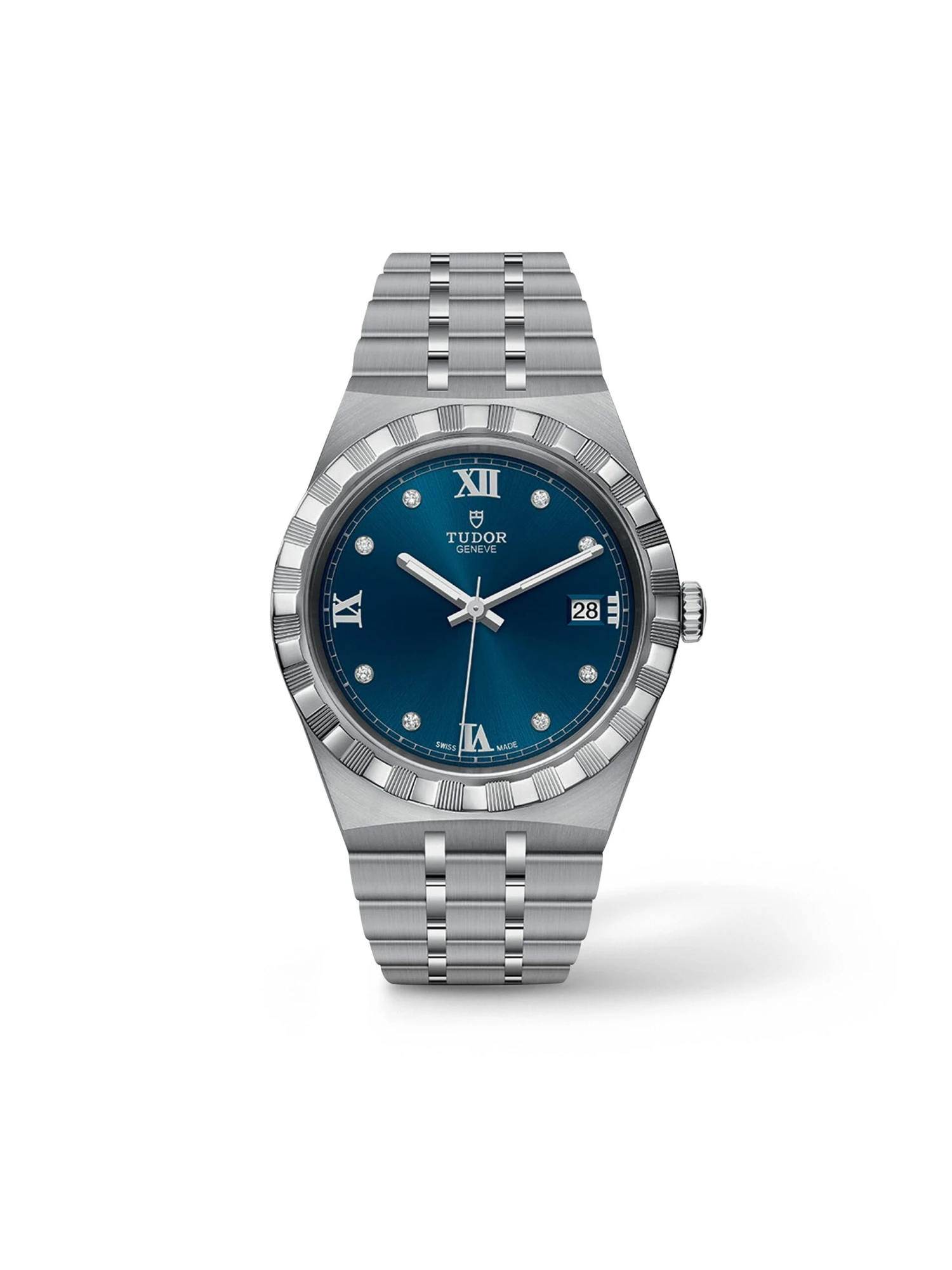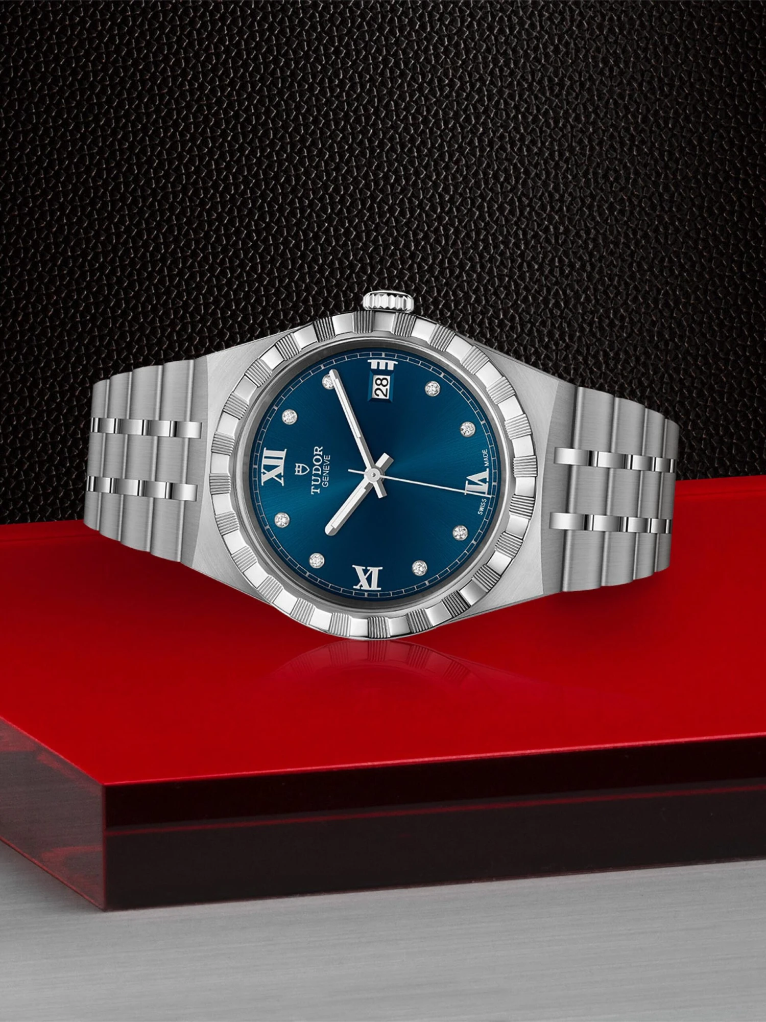 Royal is a name first used by TUDOR in the 1950s to emphasise the superior quality of its watches. The TUDOR Royal range is part of this heritage in that it offers automatic sport-chic watches with integrated bracelets that are as affordable as they are uncompromising. Cutting-edge technical performance and refined aesthetic are characteristic of this range, which sits at the crossroads between classic and sports watches and comes in stainless steel or stainless steel and gold and is offered in 4 sizes with 9 possible dials.