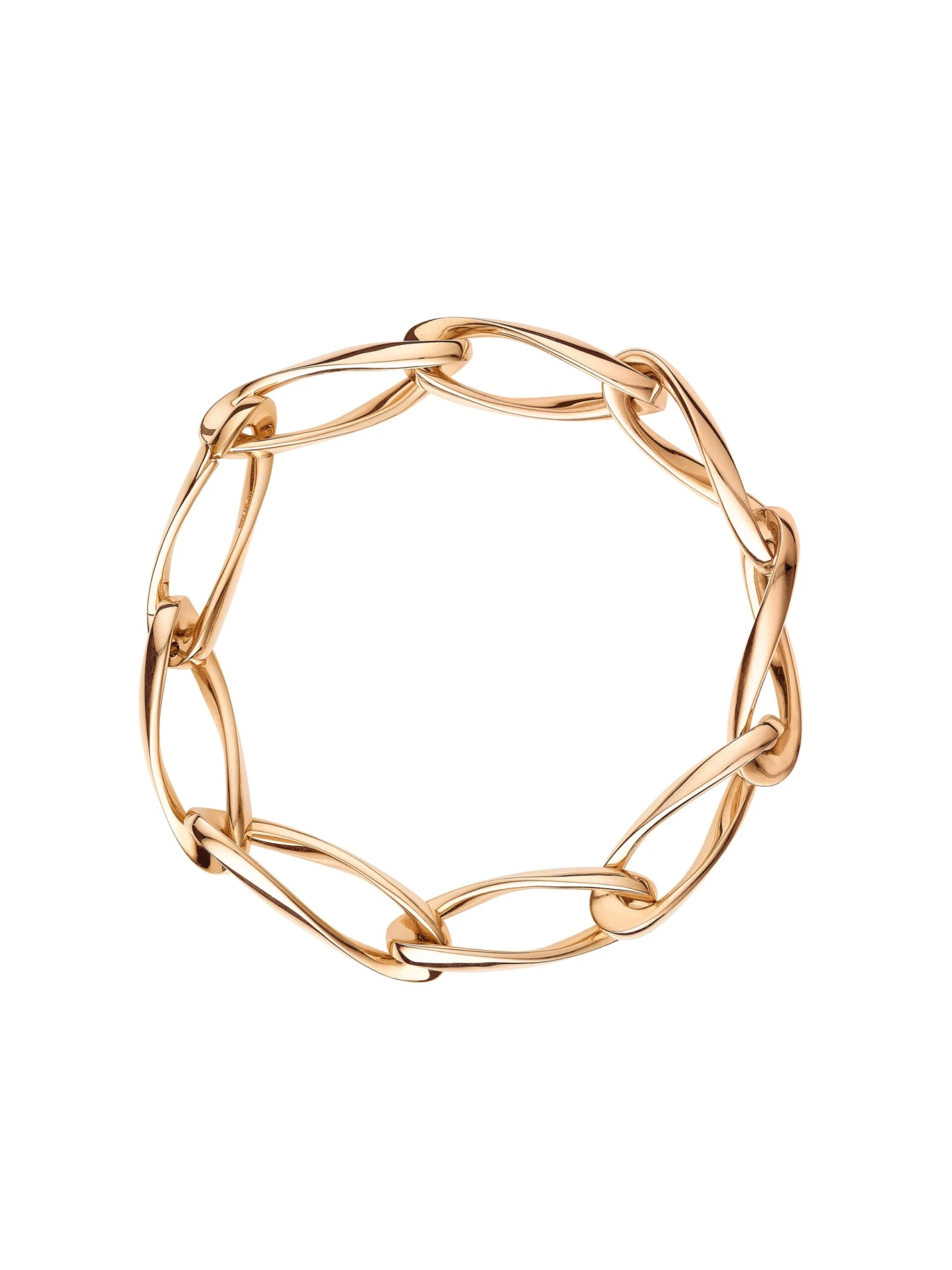 The oval, inward-twisting links of the Voyage BY KIM bracelet line up energetically and draw attention to the material they have been crafted from: 18k rose gold. The striking appearance of this link strap is perfectly attuned to the current taste for voluminous gold jewelry.